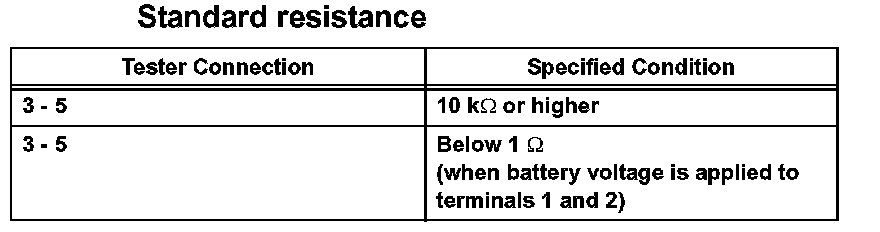 If the result is not as specified, replace the relay.