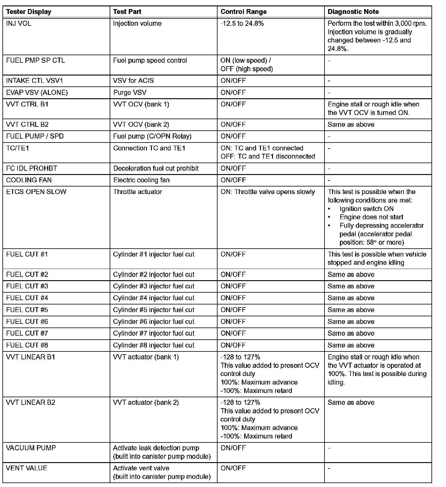 PERFORM ACTIVE TESTHINT: Performing the intelligent tester's ACTIVE TEST allows relay, Vacuum Switching Valve (VSV), actuator and other items to be operated without removing any parts. Performing the ACTIVE TEST early in troubleshooting is one way to save time. The DATA LIST can be displayed during the ACTIVE TEST.