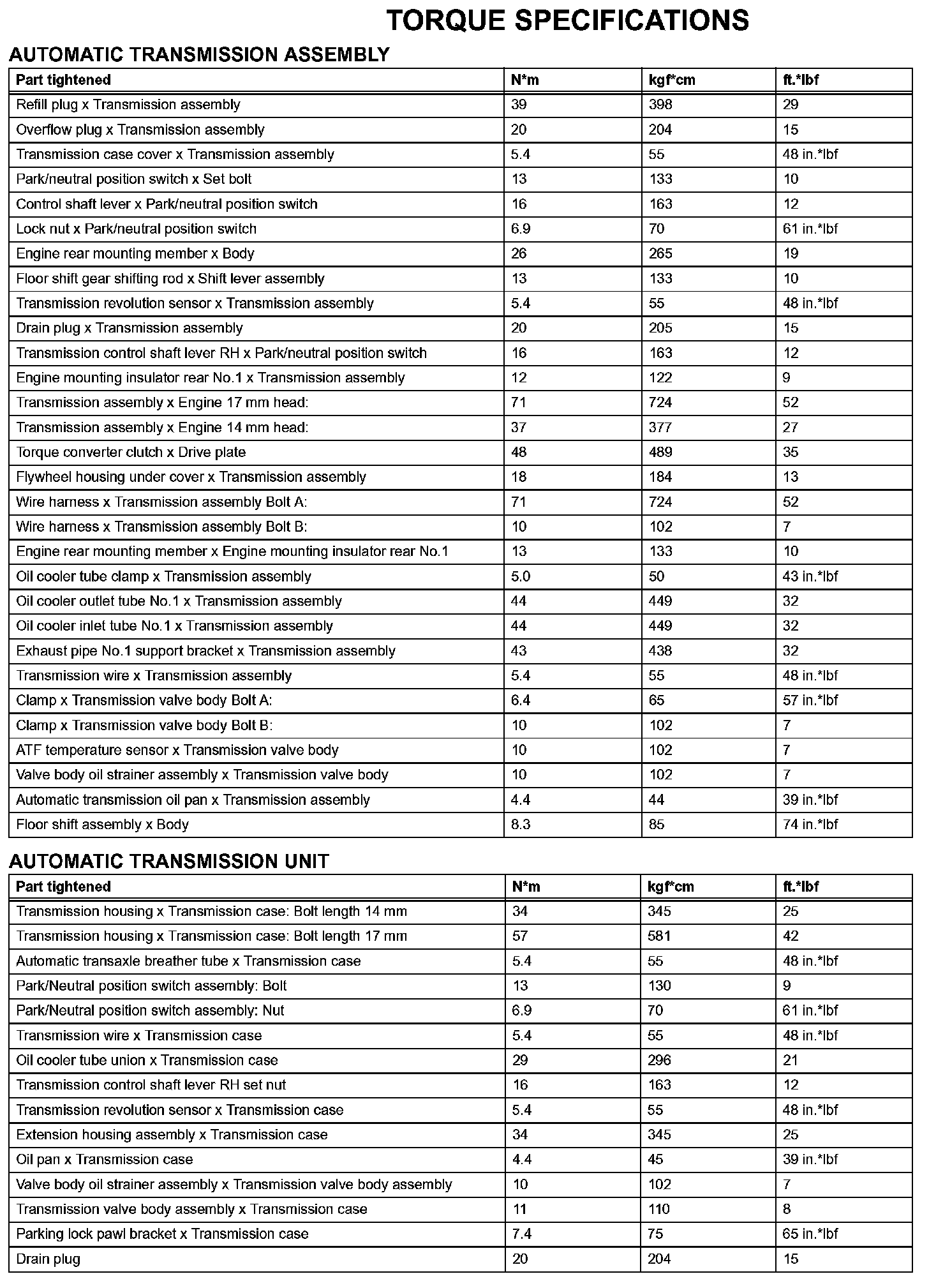 Automatic Transmission - Torque Specifications (Part 1):