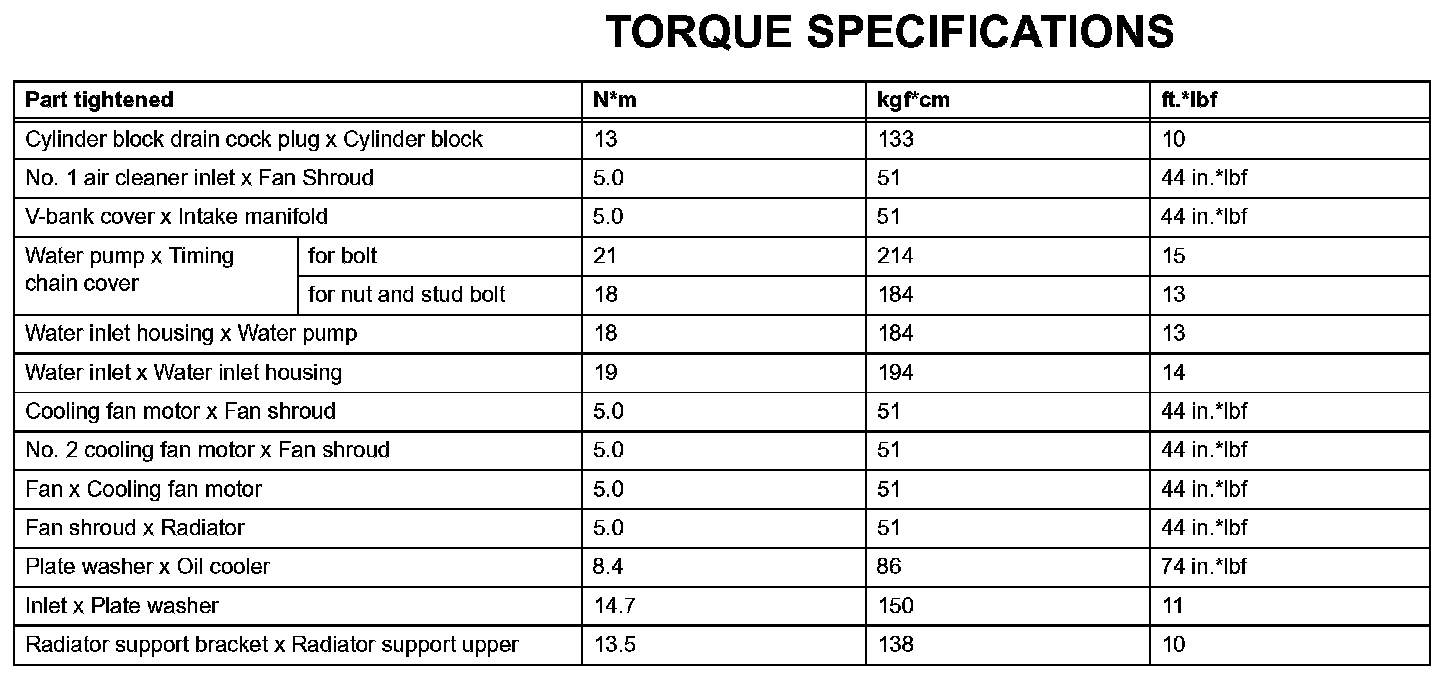 Cooling - Torque Specifications: