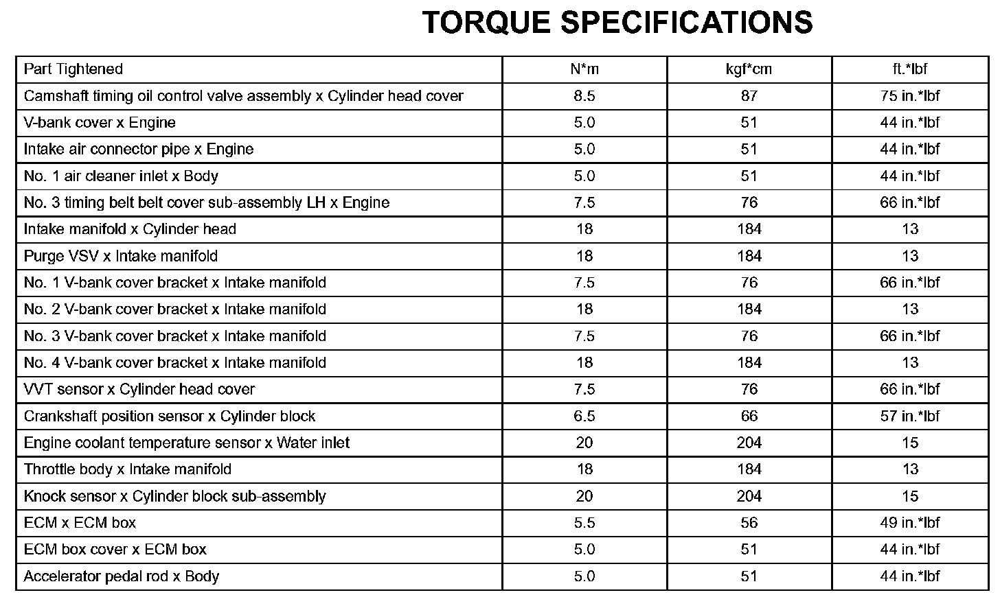 Engine Control System - Torque Specifications: