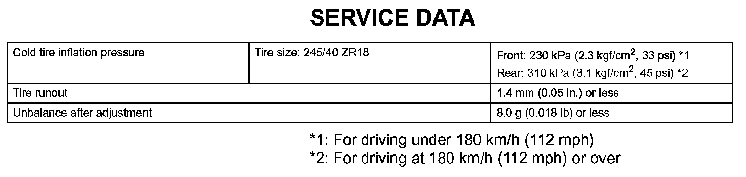 Tire And Wheel - Service Data:
