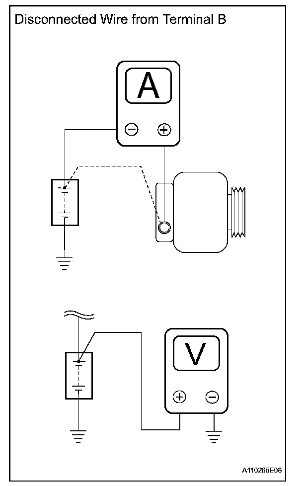 1. Disconnect the wire from terminal B of the generator and connect it to the ammeter's negative (-) lead.