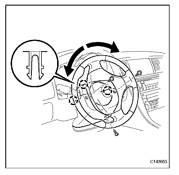 (b) Turn the steering wheel to the left and right as necessary to install the 2 screws.