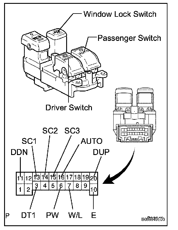 INSPECTION1. INSPECT POWER WINDOW REGULATOR MASTER SWITCH ASSEMBLY