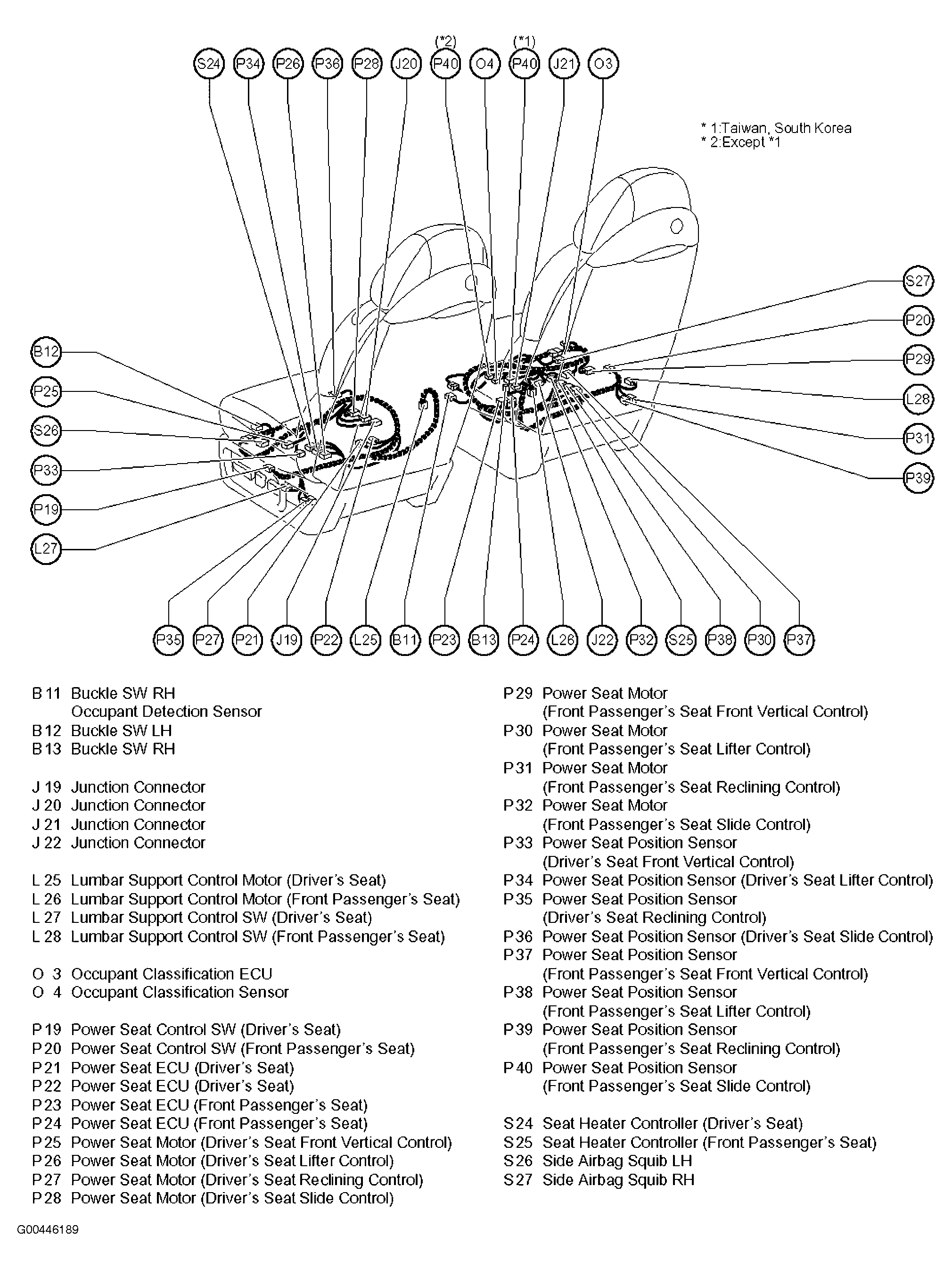 | Power Seat ECU (Front Passenger's Seat) | Under front passenger's seat. See Figure. |