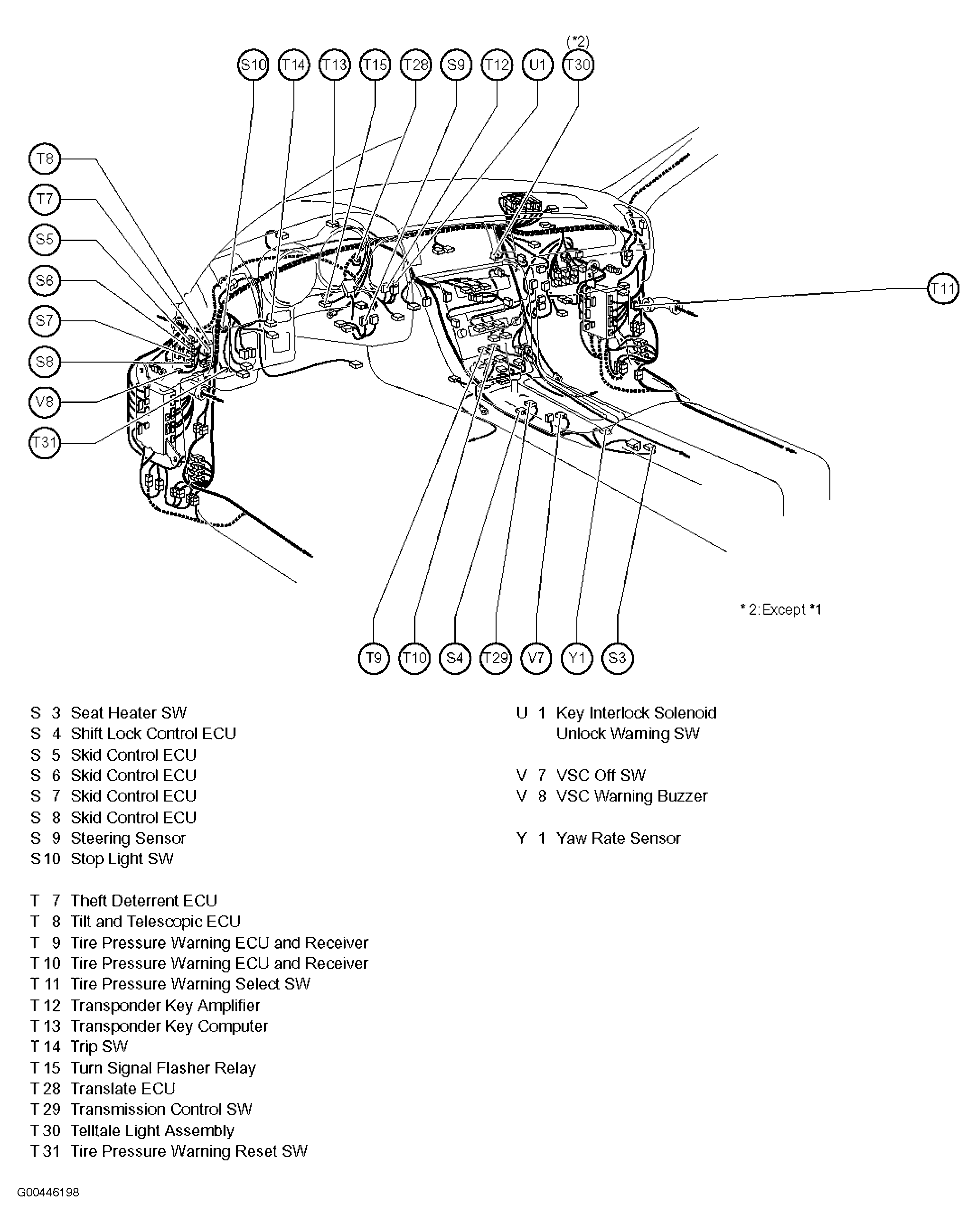 | Tire Pressure Warning ECU & Receiver | Behind center of dash, below radio. See Figure. |