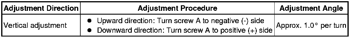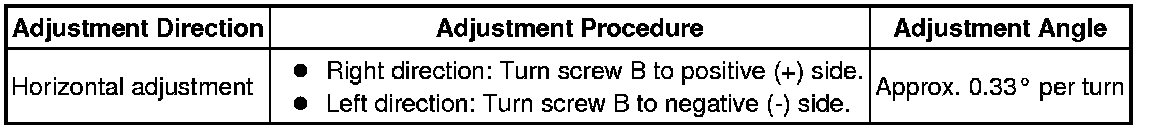 - If "LEFT SIDE: 1.0°" is displayed, the divergence is 1.0° in the left direction. Turn screw B approximately 3 turns to the negative (-) side.