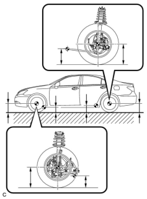 (a) Bounce the vehicle up and down at the corners to stabilize the suspension. Inspect the vehicle height.