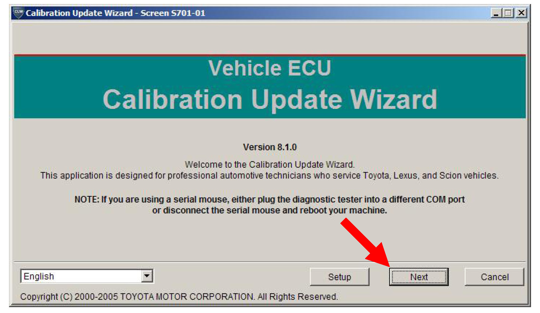 B. Click Next to start the calibration update process.