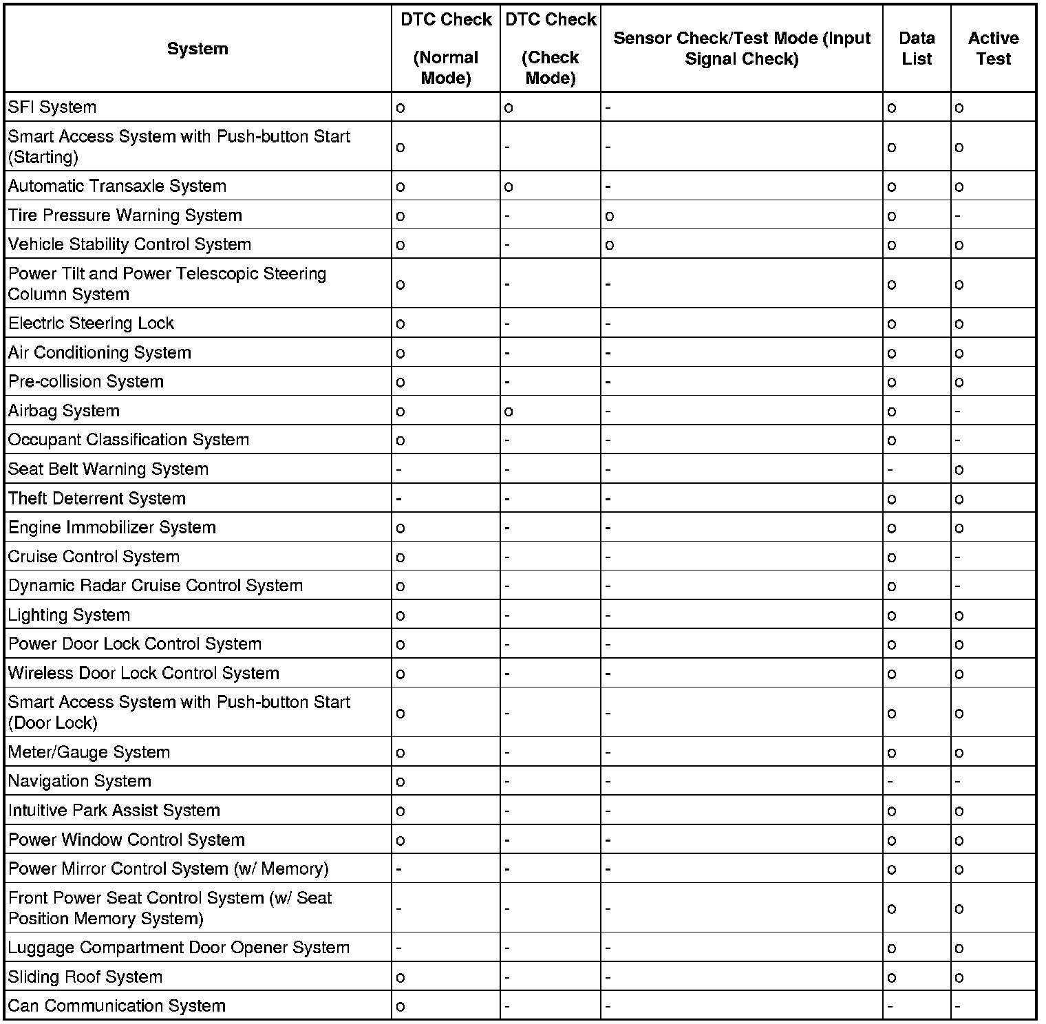 By using these functions, the problem areas can be narrowed down and troubleshooting is more effective. Diagnostic functions are incorporated in the following system in the LEXUS ES350.
