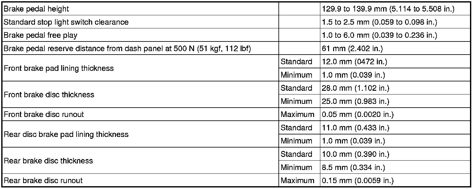 SERVICE SPECIFICATIONS: BRAKE: SERVICE DATA