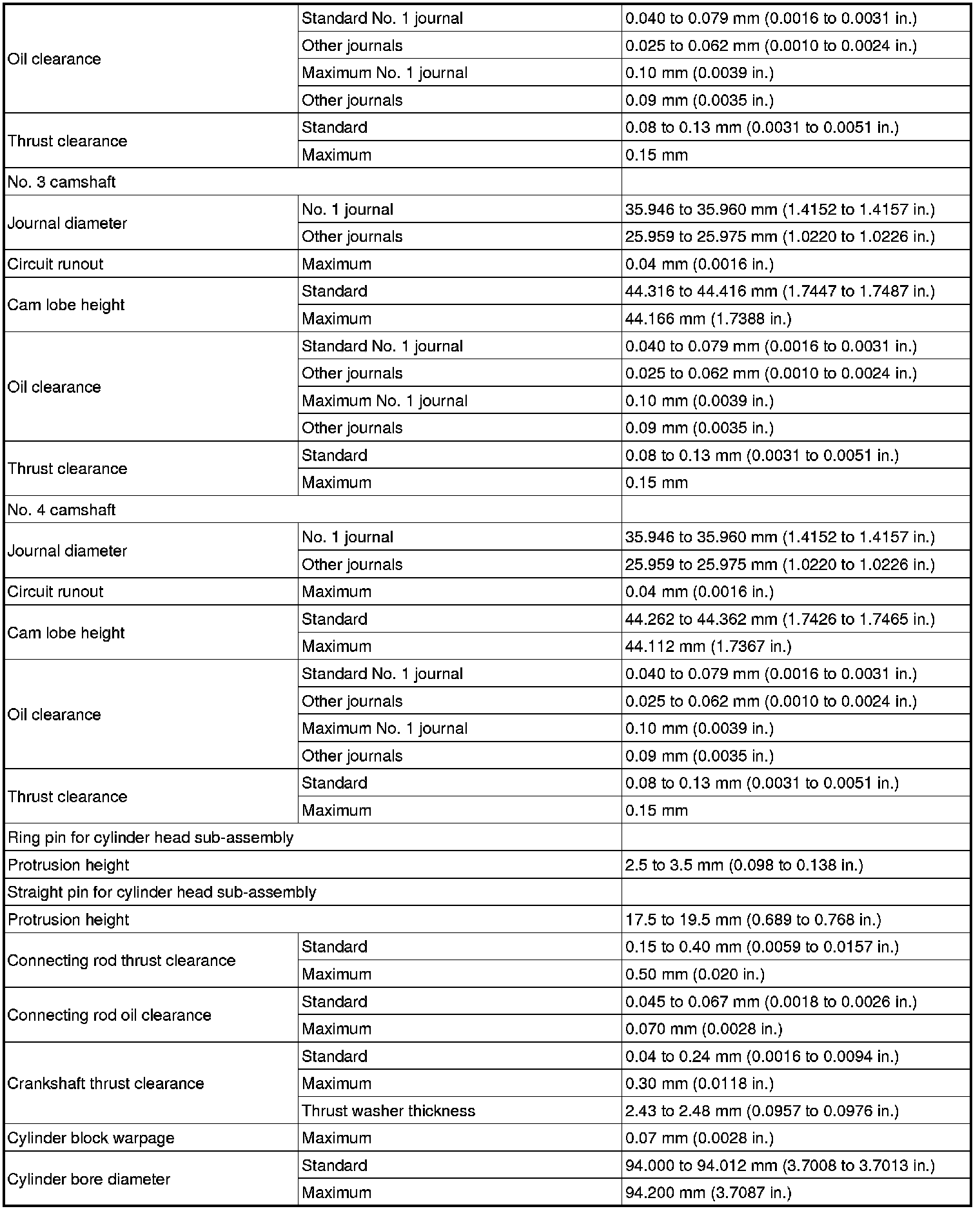 SERVICE SPECIFICATIONS: 2GR-FE ENGINE MECHANICAL: SERVICE DATA