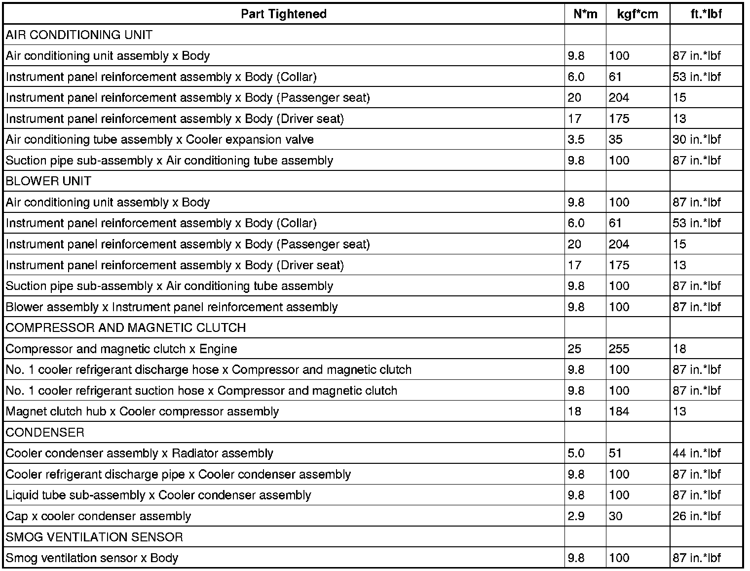 SERVICE SPECIFICATIONS: AIR CONDITIONING: TORQUE SPECIFICATIONS