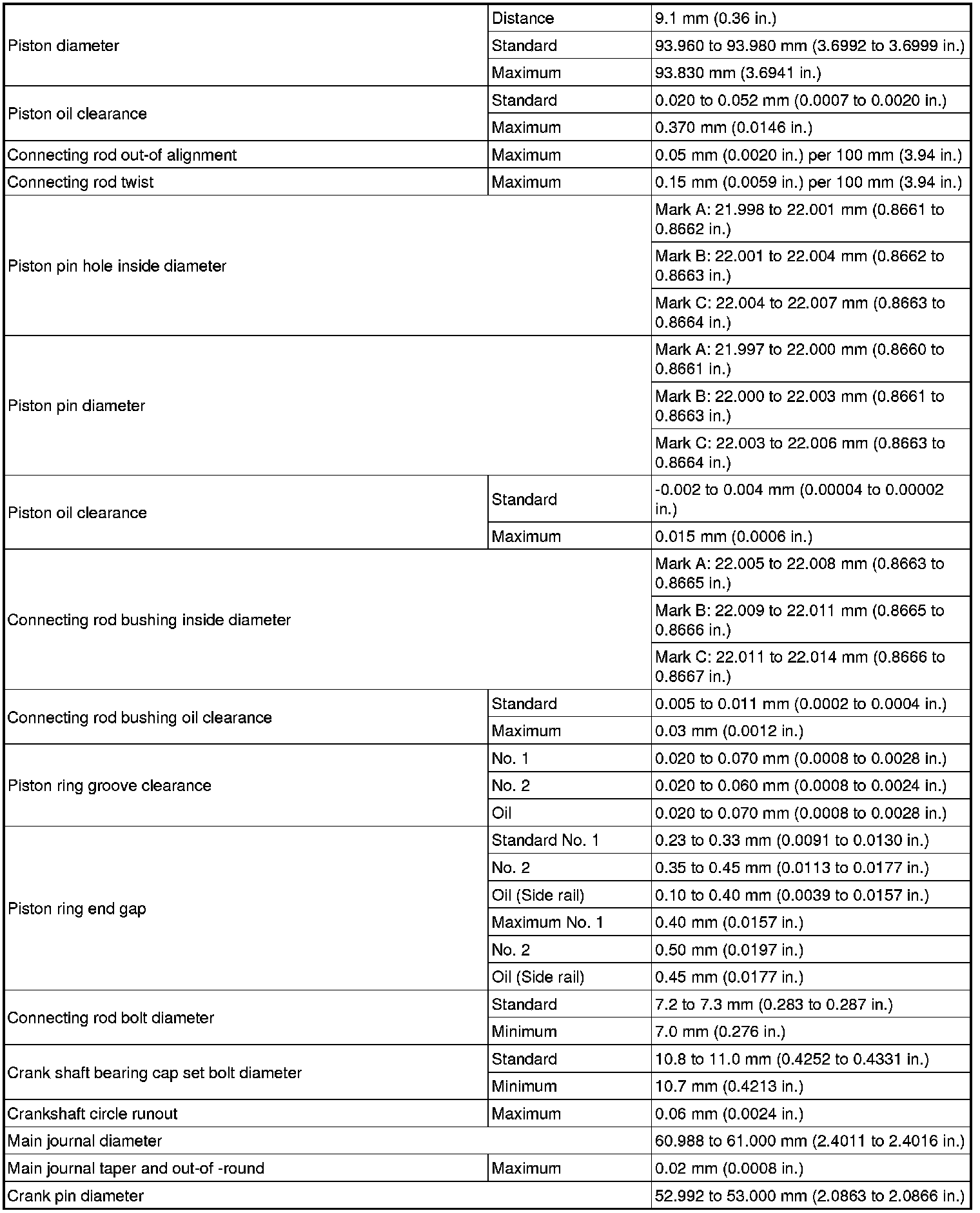 SERVICE SPECIFICATIONS: 2GR-FSE ENGINE MECHANICAL: SERVICE DATA