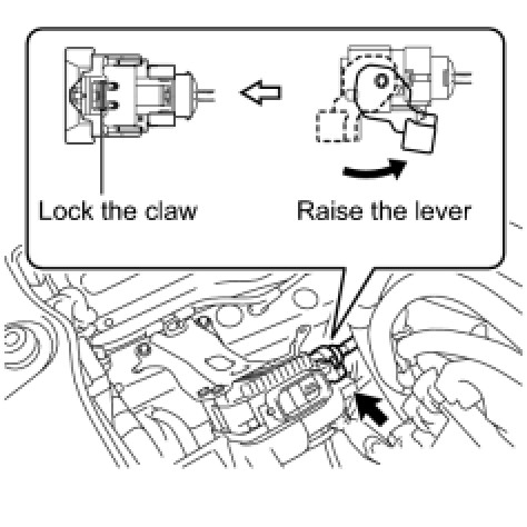(d) Connect the connector and securely lock the lock lever as shown in the illustration.