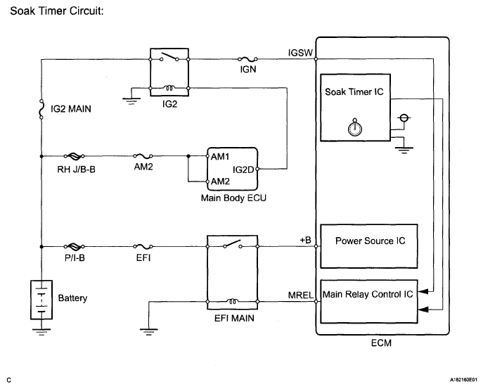 COMPONENT OPERATIONComponent Operation Canister Contains activated charcoal to absorb EVAP (Evaporative Emissions) generated in fuel tank. Cut-off valve Located in fuel tank. Valve floats and closes when fuel tank 100% full. Purge VSV (Vacuum Switching Valve) Opens or closes line between canister and intake manifold. ECM uses purge VSV to control EVAP purge flow. In order to discharge EVAP absorbed by canister to intake manifold, ECM opens purge VSV. EVAP discharge volume to intake manifold controlled by purge VSV duty cycle ratio (current-carrying time). (Open: ON, Closed: OFF) Refueling valve Controls EVAP pressure from fuel tank to canister. Valve consists of diaphragm, spring and restrictor (diameter: 0.08 inch). When fuel vapor and pressure inside fuel tank increase, valve opens. While EVAP purged, valve closes and restrictor prevents large amount of vacuum from affecting pressure in fuel tank. Valve opened while refueling. Roll-over valve Located in fuel tank. Valve closes by its own weight when vehicle overturns to prevent fuel from spilling out. Soak timer Built into ECM. To ensure accurate EVAP monitor, measures 5 hours (+/-15 minutes) after engine switch turned off. This allows fuel to cool down, stabilizing EVAP pressure. When approximately 5 hours elapsed, ECM activates (refer to Fig 6). Canister pump module Consists of (a) to (d) below. Canister pump module cannot be disassembled. (a) Vent valve Vents and closes EVAP system. When ECM turns valve ON, EVAP system closed. When, ECM turns valve OFF, EVAP system vented. Negative pressure (vacuum) created in EVAP system to check for EVAP leaks by closing purge VSV, turning on vent valve (closed) and operating leak detection pump (refer to Fig 4). (b) Canister pressure sensor Indicates pressure as voltages. ECM supplies regulated 5 V to canister pressure sensor, and uses feedback from sensor to monitor EVAP system pressure (refer to Fig 5). (c) Leak detection pump Creates negative pressure (vacuum) in EVAP system for leak check. (d) Reference orifice Has opening with 0.02 inch diameter. Vacuum produced through orifice by closing purge VSV, turning off vent valve and operating leak detection pump, to monitor reference pressure. Reference pressure indicates small leak of EVAP. - The 1st monitor
