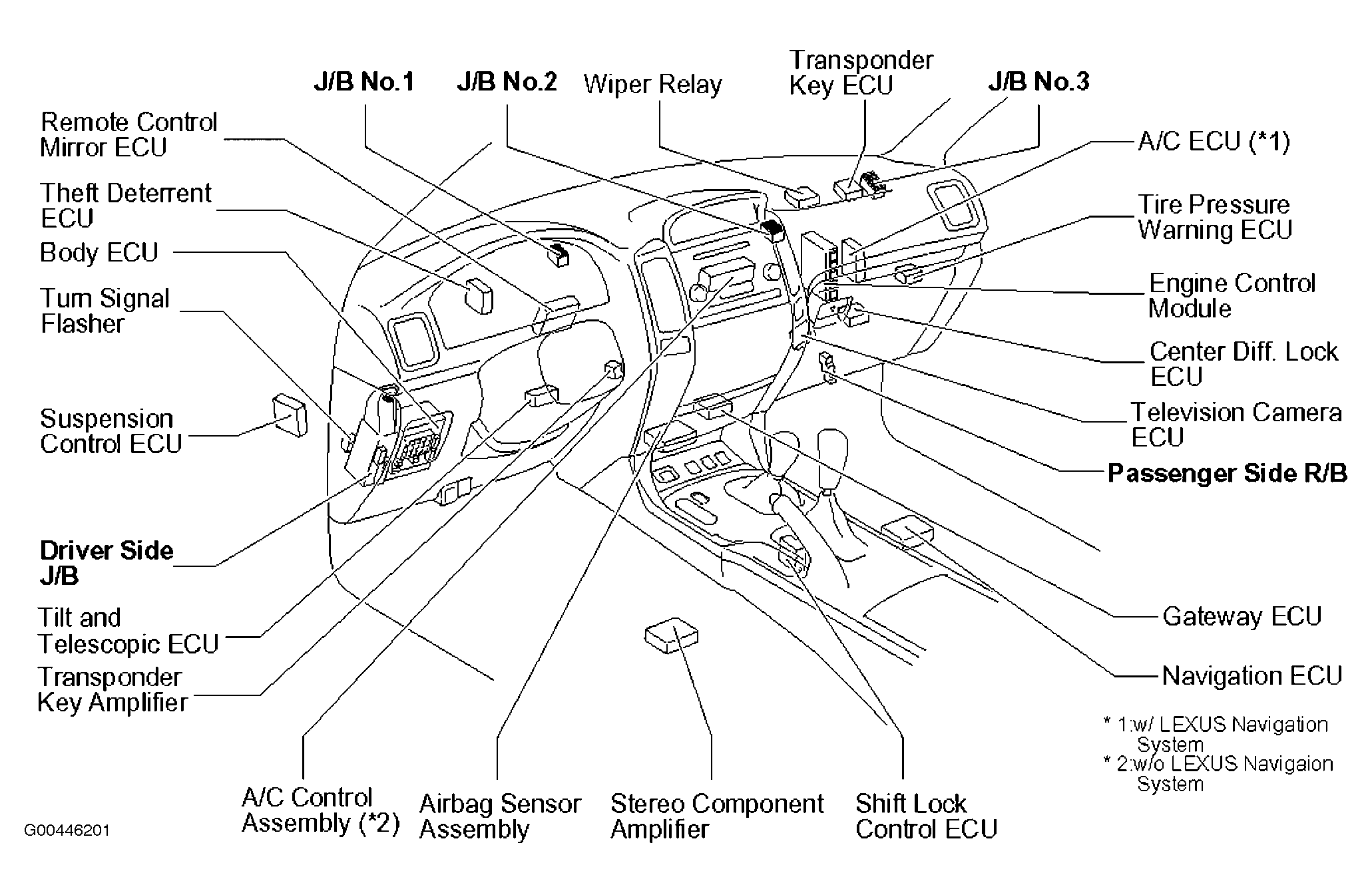 J/B No. 1 Behind center of dash. See Figure.