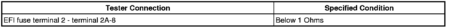 (1) Remove the EFI fuse. Using an ohmmeter, measure the resistance between the terminals.