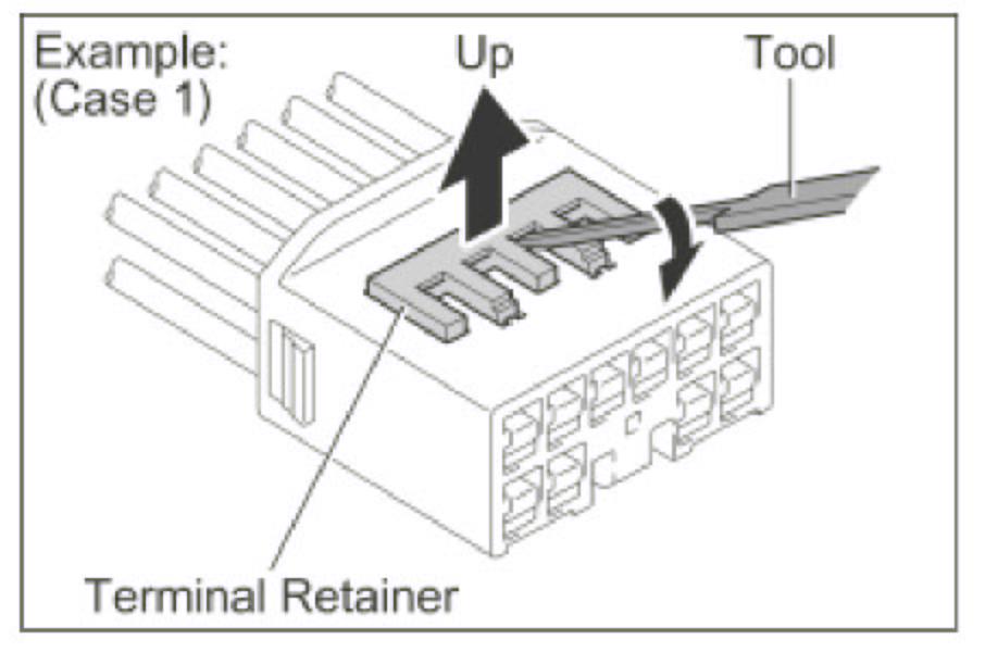 HINT: To remove the terminal from the connector, please construct and use the special tool or like object shown on the left.