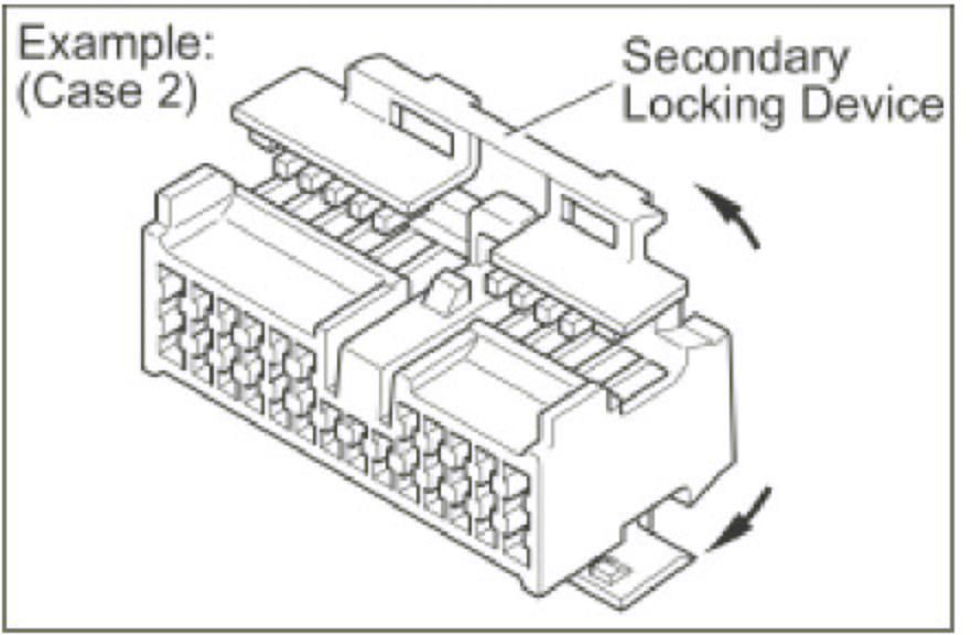 Use a special tool or the terminal pick to unlock the secondary locking device or terminal retainer.