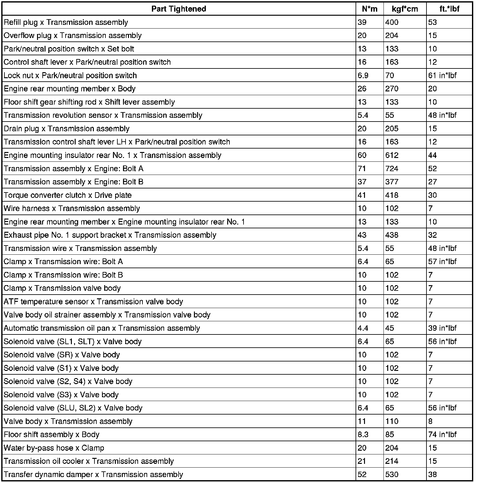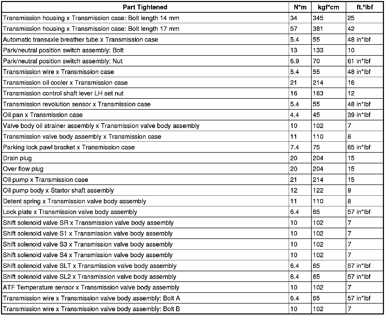 SERVICE SPECIFICATIONS: A760H AUTOMATIC TRANSMISSION: TORQUE SPECIFICATIONS