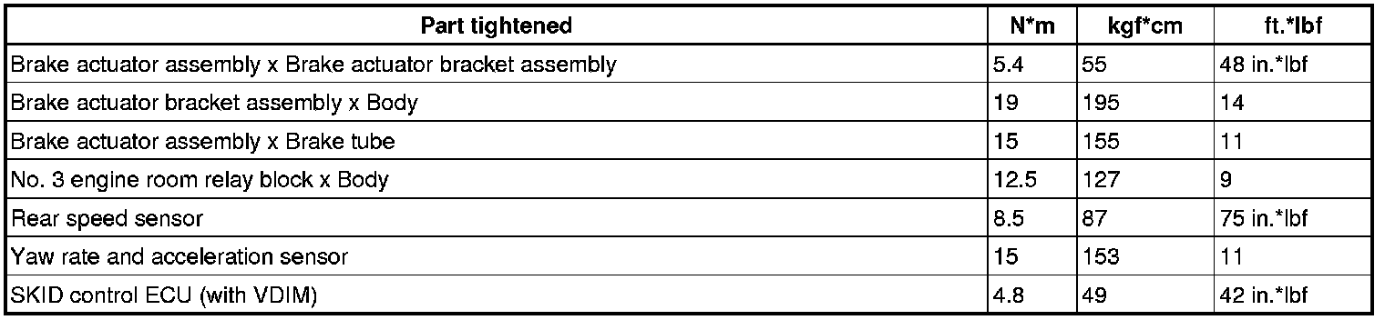 SERVICE SPECIFICATIONS: BRAKE CONTROL: TORQUE SPECIFICATIONS
