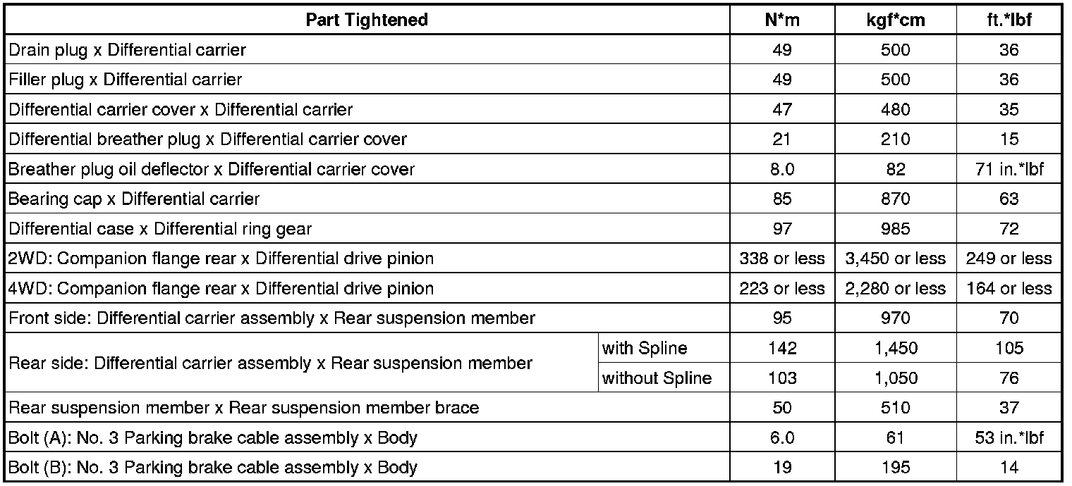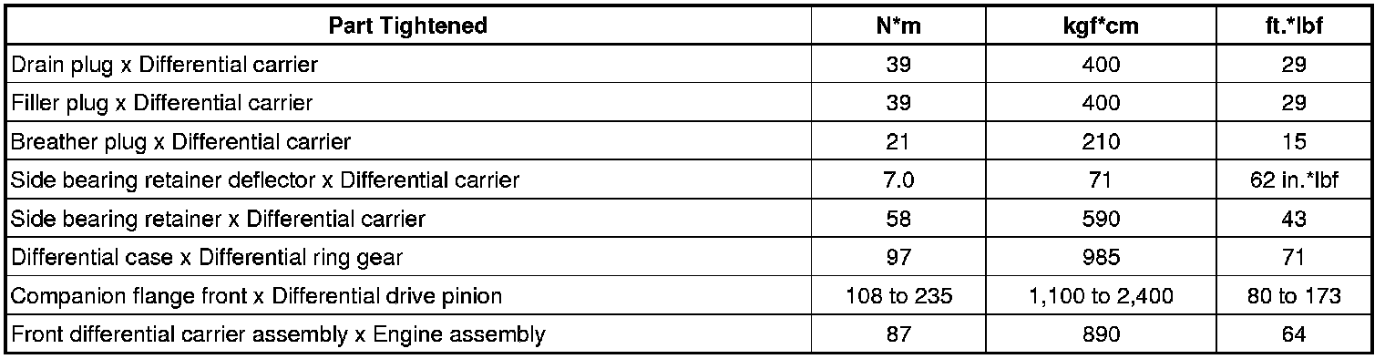 SERVICE SPECIFICATIONS: DIFFERENTIAL: TORQUE SPECIFICATIONS