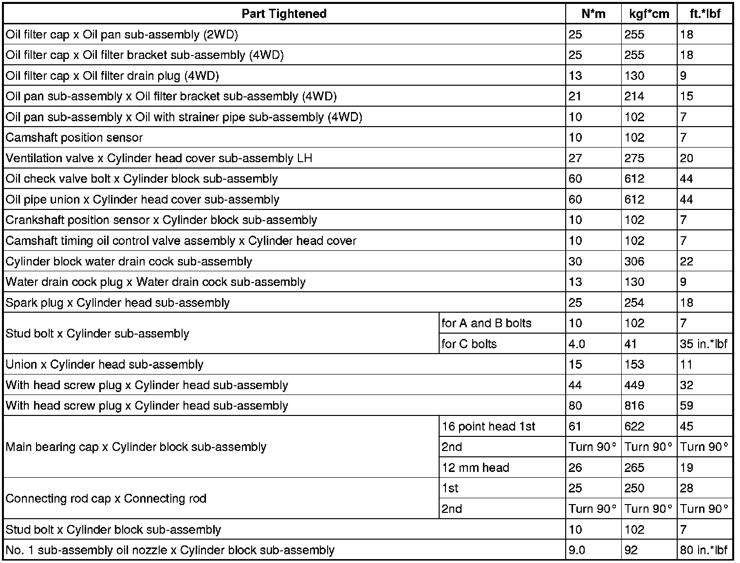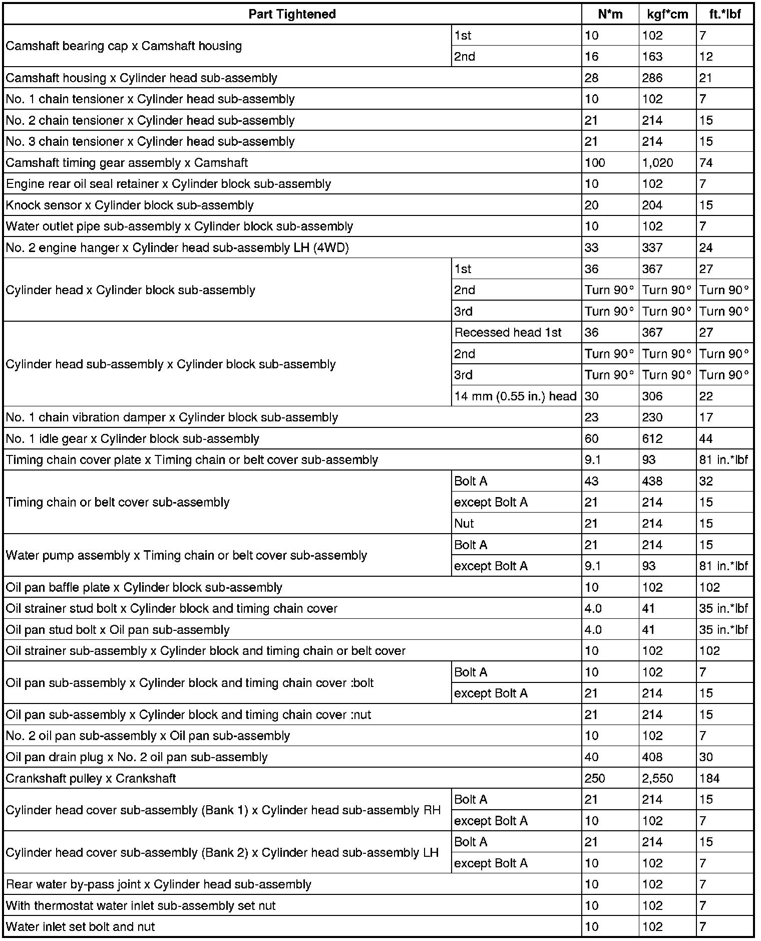 SERVICE SPECIFICATIONS: 4GR-FSE ENGINE MECHANICAL: TORQUE SPECIFICATIONS