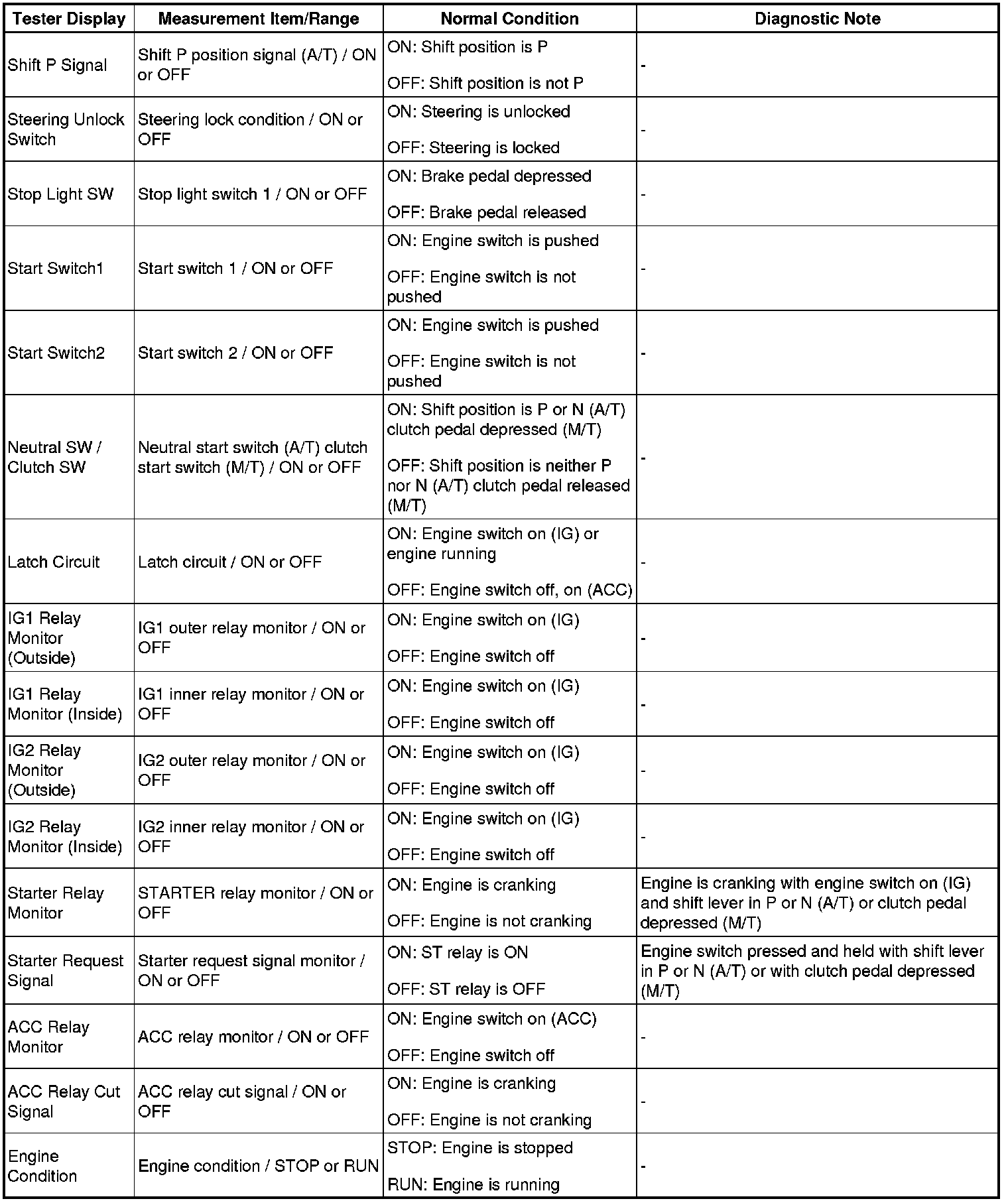 HINT: Using Techstream to read the Data List allows the values or states of switches, sensors, actuators and other items to be read without removing any parts. This non-intrusive inspection can be very useful as intermittent conditions or signals may be discovered before parts or wiring is disturbed. Reading the DATA LIST information early in troubleshooting is one way to save diagnostic time.