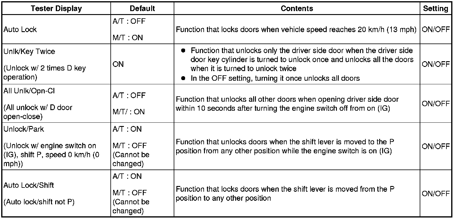 DOOR LOCK: POWER DOOR LOCK CONTROL SYSTEM: CUSTOMIZE PARAMETERS