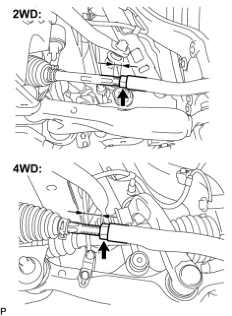 HINT: If toe-in is not within the specified range, adjust it at the rack ends.