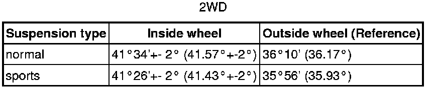 - The maximum tolerance of right and left difference for the camber and caster is 30' (0.5°) or less.