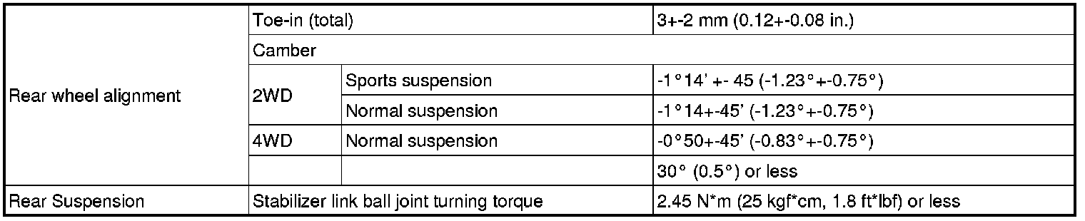 SERVICE SPECIFICATIONS: SUSPENSION: SERVICE DATA