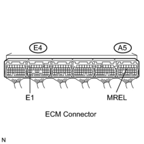 When the engine switch is turned on (IG), voltage from the ECM's MREL terminal applies to the integration relay (EFI MAIN relay). This causes the contacts of the integration relay (EFI MAIN relay) to close, which supplies power to terminal +B or +B1 of the ECM.