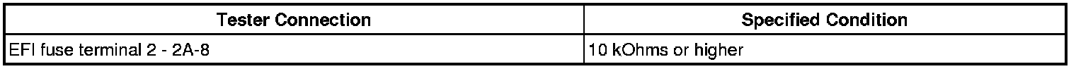 (1) Remove the EFI fuse. Using an ohmmeter, measure the resistance between the terminals.