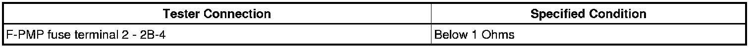 (1) Remove the F/PMP fuse. Using an ohmmeter, measure the resistance between the terminals.