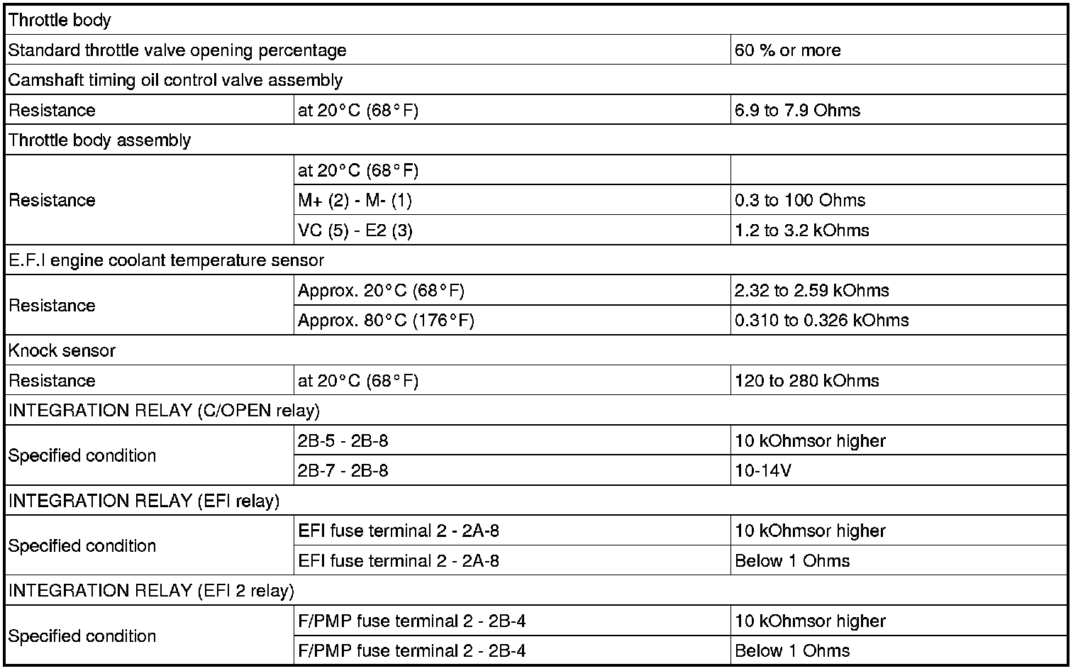 SERVICE SPECIFICATIONS: 2GR-FSE ENGINE CONTROL SYSTEM: SERVICE DATA