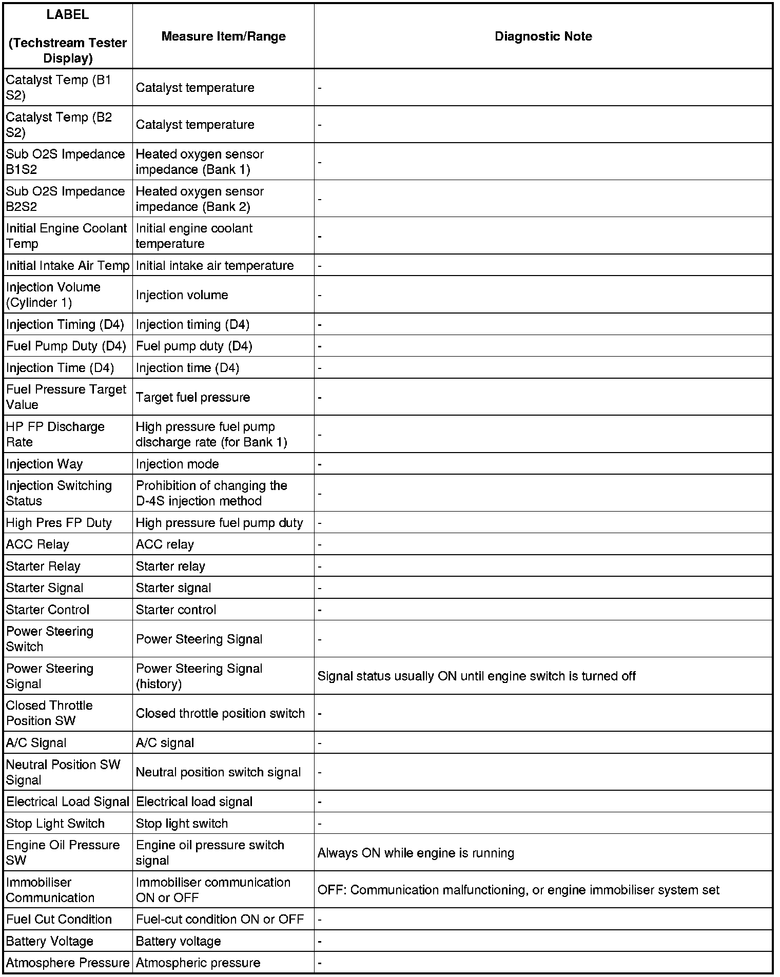 2GR-FSE ENGINE CONTROL SYSTEM: SFI SYSTEM: FREEZE FRAME DATA