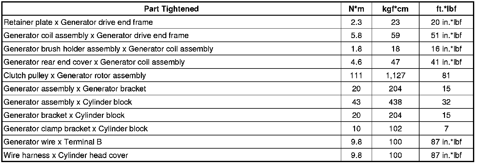 SERVICE SPECIFICATIONS: 2GR-FSE CHARGING: TORQUE SPECIFICATIONS