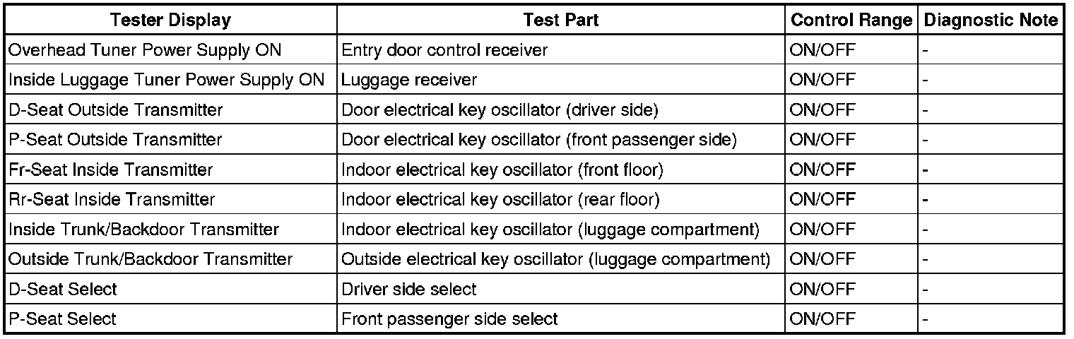 THEFT DETERRENT / KEYLESS ENTRY: SMART ACCESS SYSTEM WITH PUSH-BUTTON START (for Entry Function): DATA LIST / ACTIVE TEST