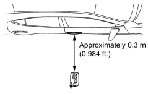 NOTICE: If the key is brought within 0.2 m (0.656 ft.) of the door outside handle assembly, communication is not possible.