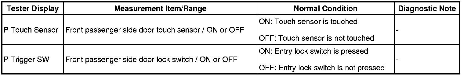 2. READ VALUE USING TECHSTREAM (DOOR OUTSIDE HANDLE)