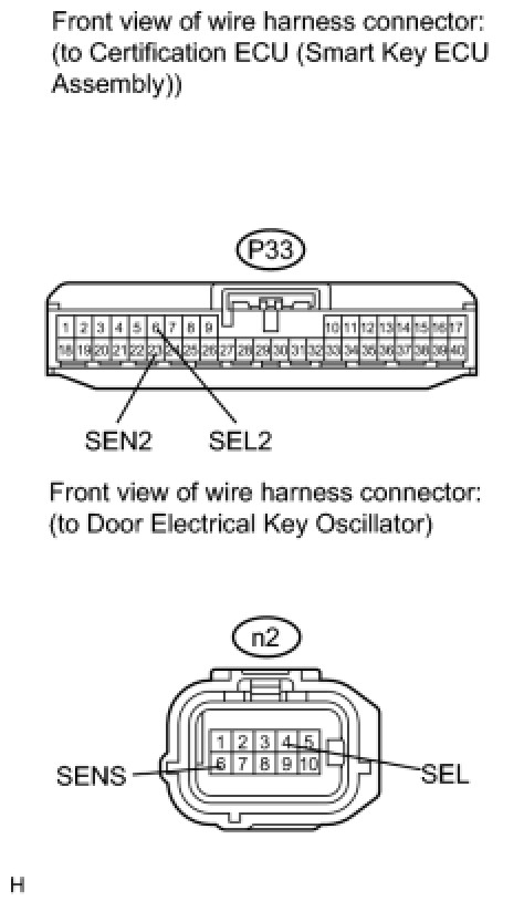 4. CHECK HARNESS AND CONNECTOR (DOOR ELECTRICAL KEY OSCILLATOR - FRONT DOOR OUTSIDE HANDLE)