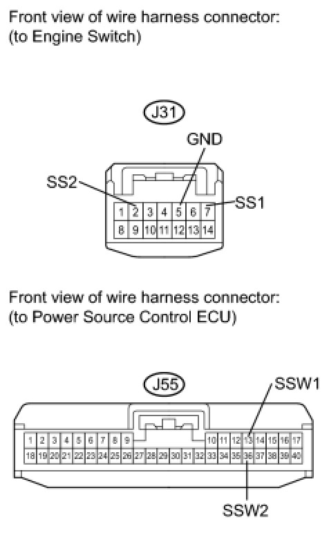 HINT: To allow use of the Techstream to inspect the push-button start function when the engine switch is off, repeat opening and closing any of the doors. Opening and closing a door establishes communication between the Techstream and the power source control ECU. (Opening and closing a door can also be simulated by operating a door courtesy light switch.)