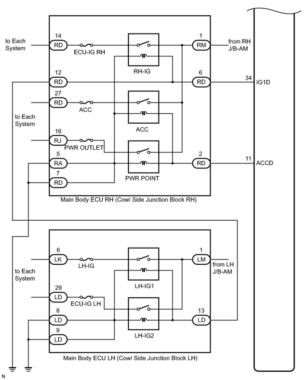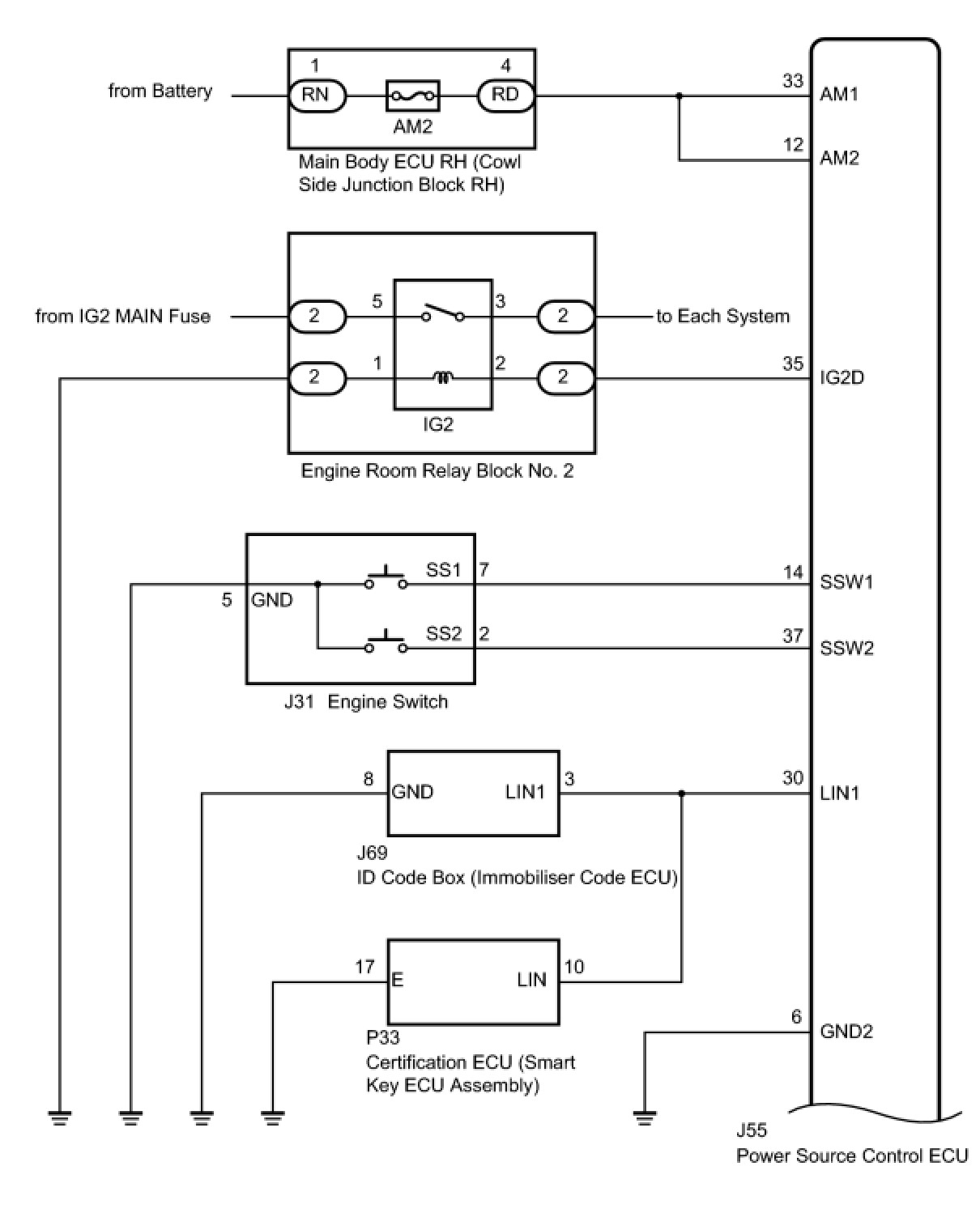 NG -- REPAIR OR REPLACE HARNESS OR CONNECTOR (POWER SOURCE CONTROL ECU - MAIN BODY ECU RH AND BODY GROUND)