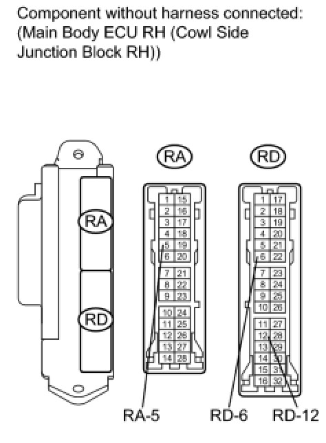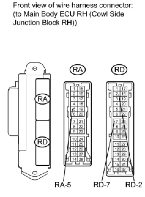5. CHECK MAIN BODY ECU RH (COWL SIDE JUNCTION BLOCK RH)