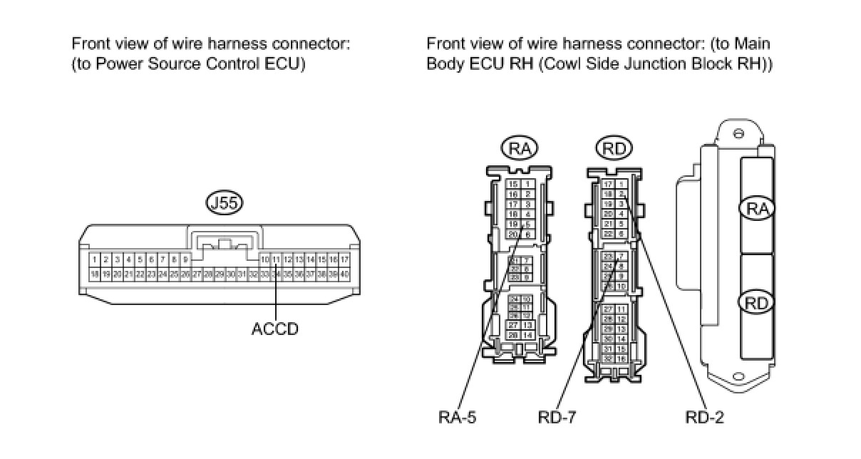 (a) Disconnect the RD and RA connectors from the main body ECU RH (cowl side junction block RH).