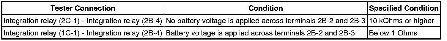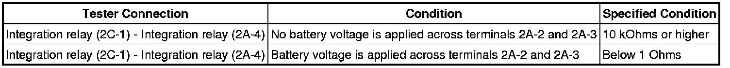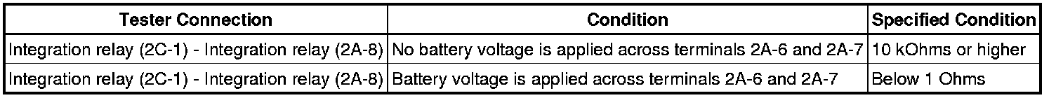 If the resistance is not as specified, replace the integration relay.
