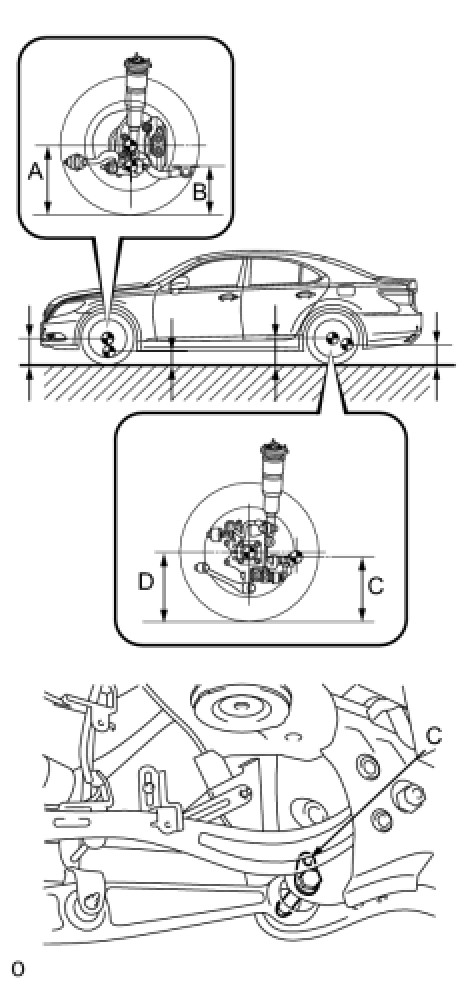 NOTE: Before inspecting the wheel alignment, adjust the vehicle height to the specified value.